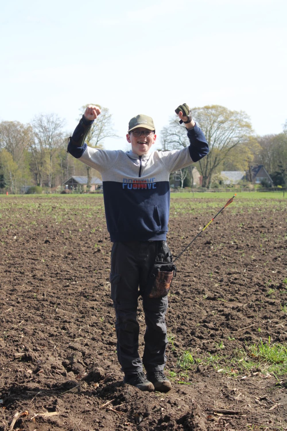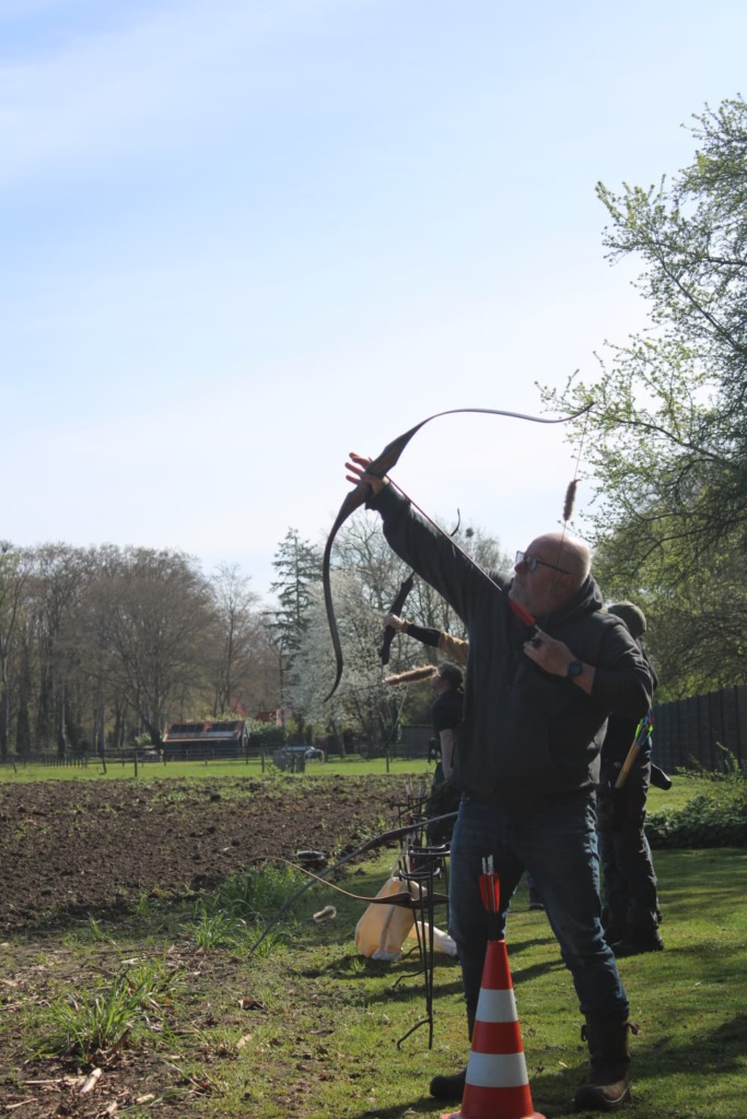 Afgelopen zondag, 12 april, was het genieten tijdens het cloutschieten op het weiland in het prachtige Diepenveen. Onder een strakblauwe hemel en in de warme voorjaarszon werd er fanatiek geschoten richting de vlag in de verte. Het open veld, de frisse lucht en het zonlicht maakten het tot een perfecte dag voor deze bijzondere tak van boogschieten. Tussen het schieten door was er volop ruimte voor gezelligheid, en iedereen genoot zichtbaar van het samenzijn en de mooie omstandigheden. Een dag om met een glimlach op terug te kijken!